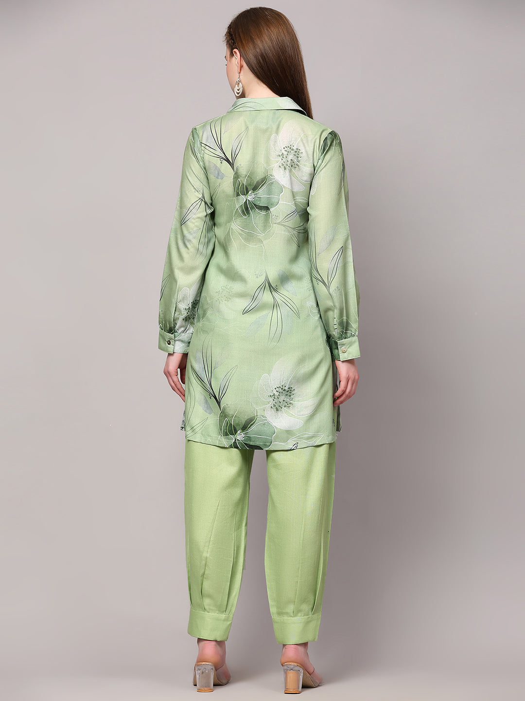 Poshak Hub Women Green Linen Digital Print Cord Set