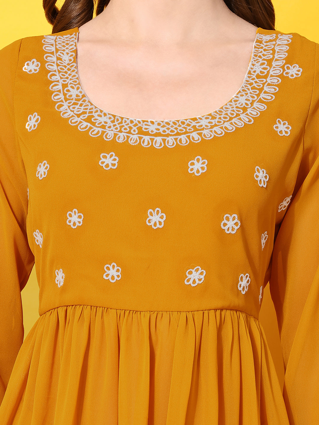 • Fabric: Lightweight georgette ensuring a flowy and comfortable fit
