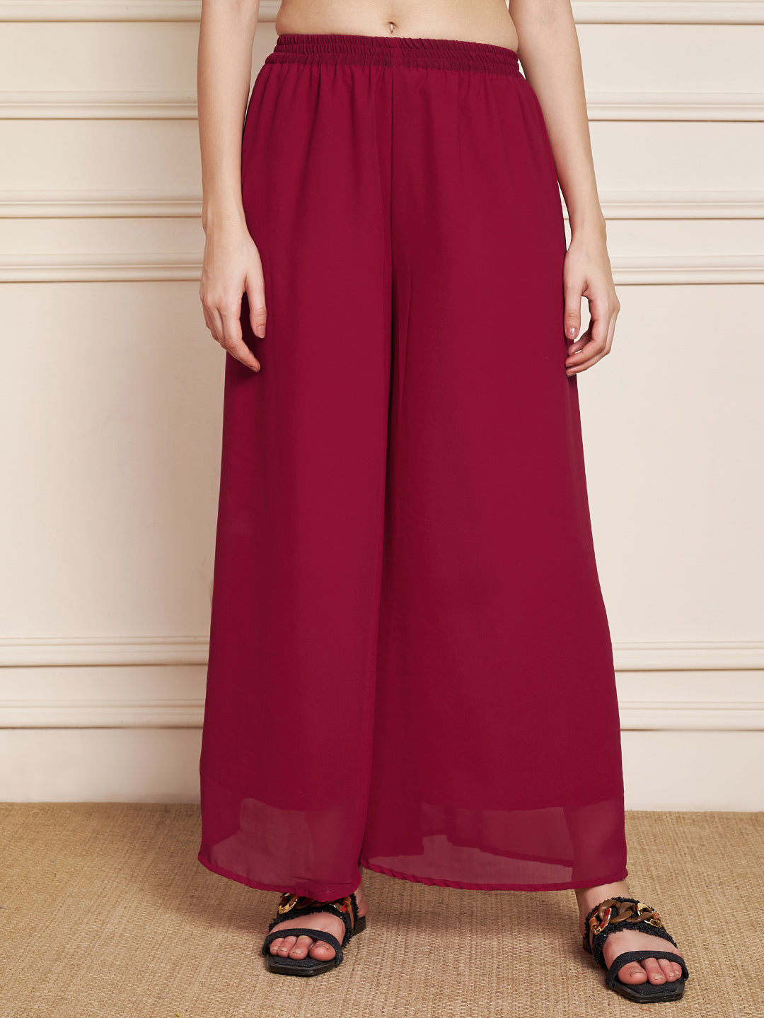 Bottom: Coordinated ankle-length sharara with all-round elasticated waistband for comfort