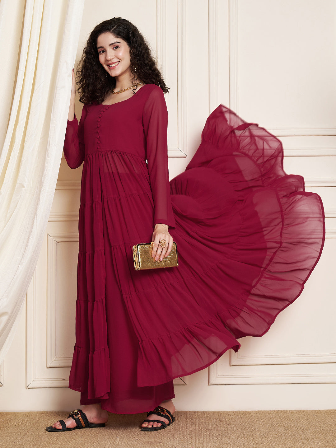 Fabric: Lightweight georgette ensuring flowy drape