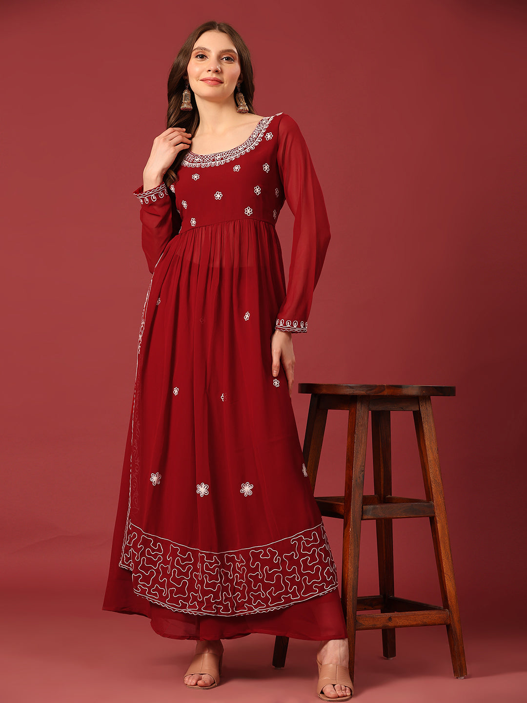 Poshak Hub Women Torquoise georgette Aari work A-Line Kurta with Sharara
