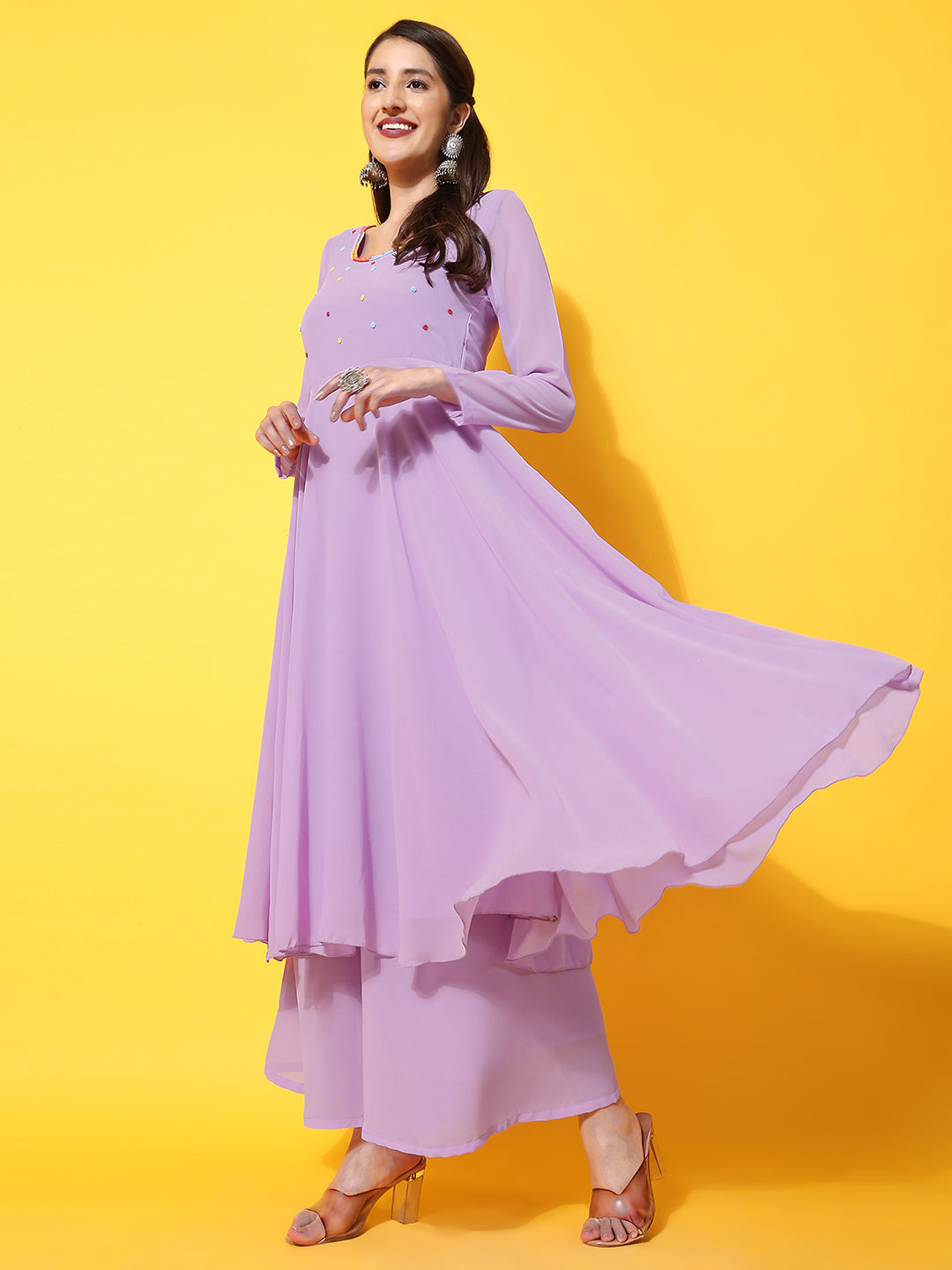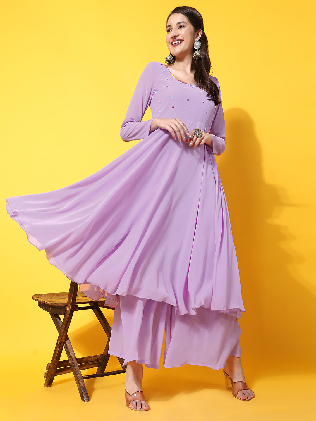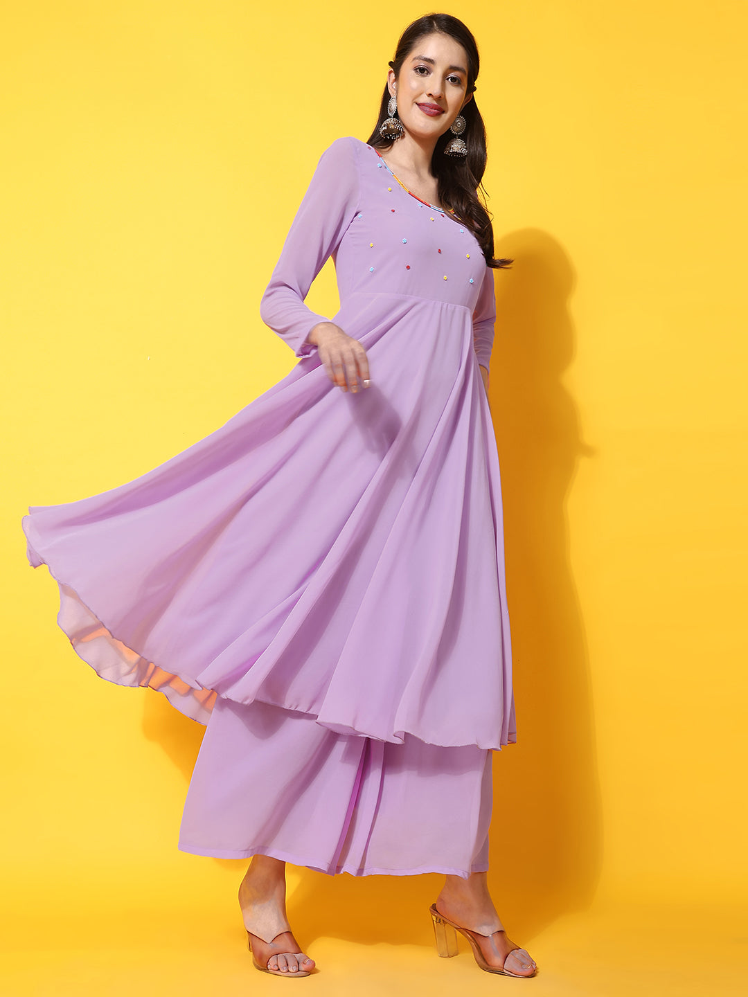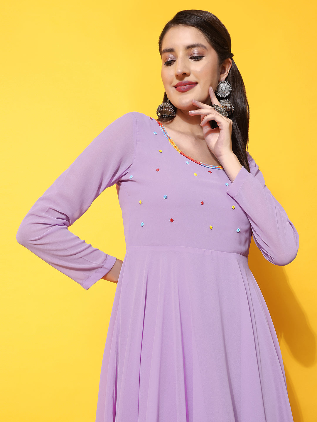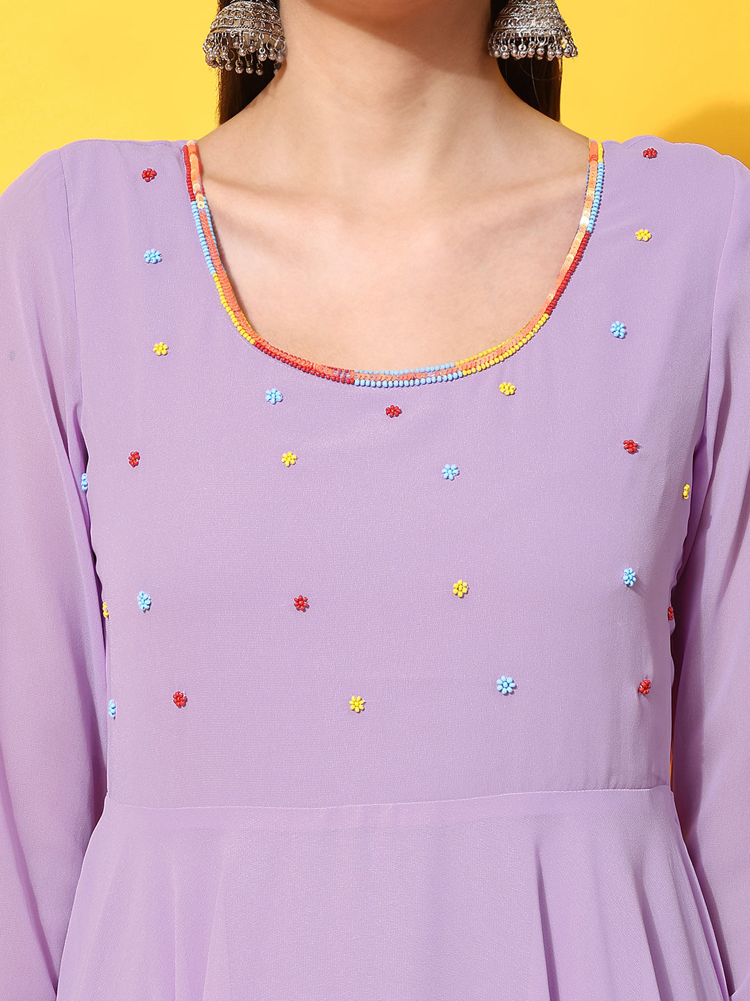 Design: Lavender Anarkali with exquisite hand embroidery on neck and front yoke.
