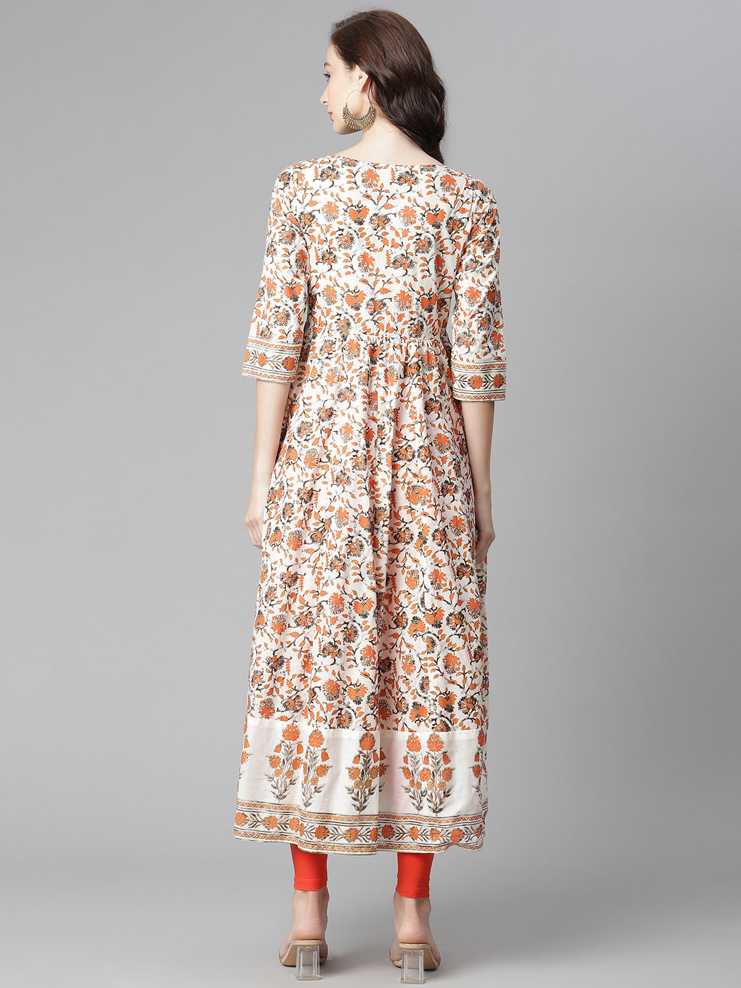 Poshak Hub Women Off White Cotton Printed Anarkali Kurta.