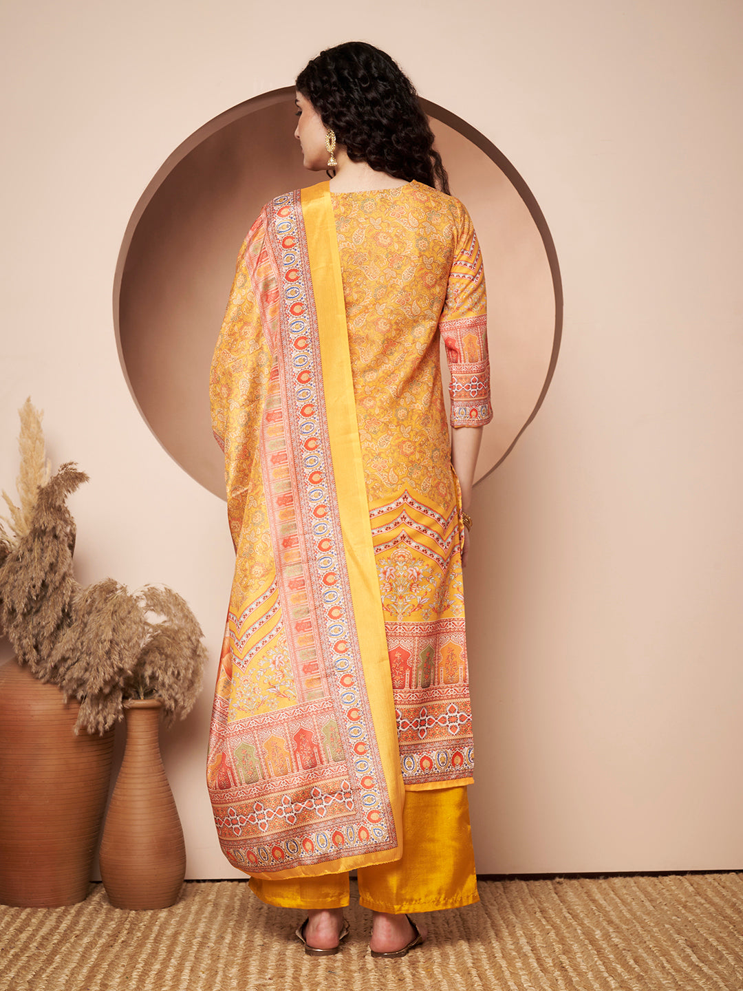 Brighten up your ethnic wardrobe with this Women’s Yellow Printed Mirror Work Kurta with Palazzo & Printed Dupatta. The kurta is beautifully adorned with delicate mirror work and intricate ethnic prints, adding a festive sparkle to the vibrant yellow base. Paired with a comfortable matching palazzo and a coordinating printed dupatta, this ensemble is the perfect mix of elegance and comfort. Ideal for festive events, casual outings, and family gatherings, this set ensures a graceful yet lively look.